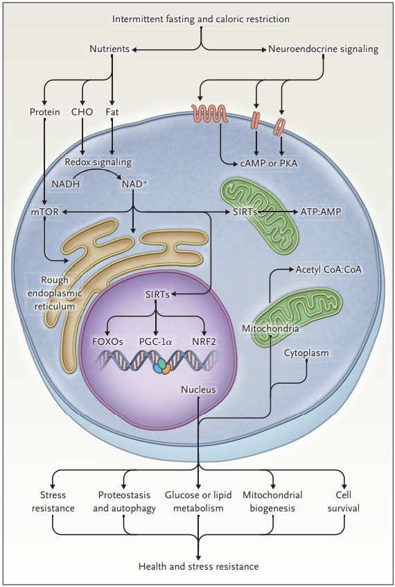 Fasting regimens, such as IF, are understood to play a role in cell protection and repair, as well as removal of impaired cells. This is in part through the fluctuations in nutrient levels, which are detected by nutrient-sensing pathways. This is a key difference to standard caloric restriciton or nutrient restriction regimens, which are instead largely focused on the potential benefits of constant caloric or macronutrient restriction.