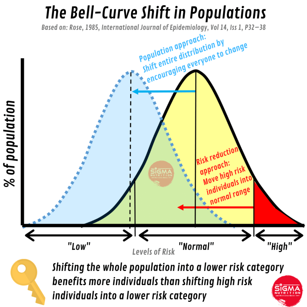 The goal of this Sigma Statement is not to resolve what any individual chooses to do with their diet. The goal is merely to present an appraisal of the evidence, objectively. Certainly, the general caveat that residual confounding will never be ruled out applies. However, this is not the limitation many think it to be, because risk in the population is always a composite sum of factors. The relevant question, echoing Rose, is how to shift the bell curve of risk across the population to a lower overall risk.