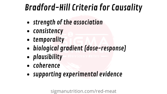 Nonetheless, the IARC publication remains arguably the most cogent overall review of the literature in relation to processed meat, as the analytical process emphasises the Bradford-Hill criteria for causality: