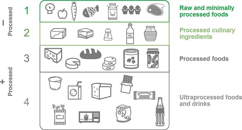 - NOVA Classification: A framework that divides foods into four groups based on processing level, from unprocessed (NOVA 1) to ultra-processed (NOVA 4). UPFs (Group 4) are those with complex industrial formulations.