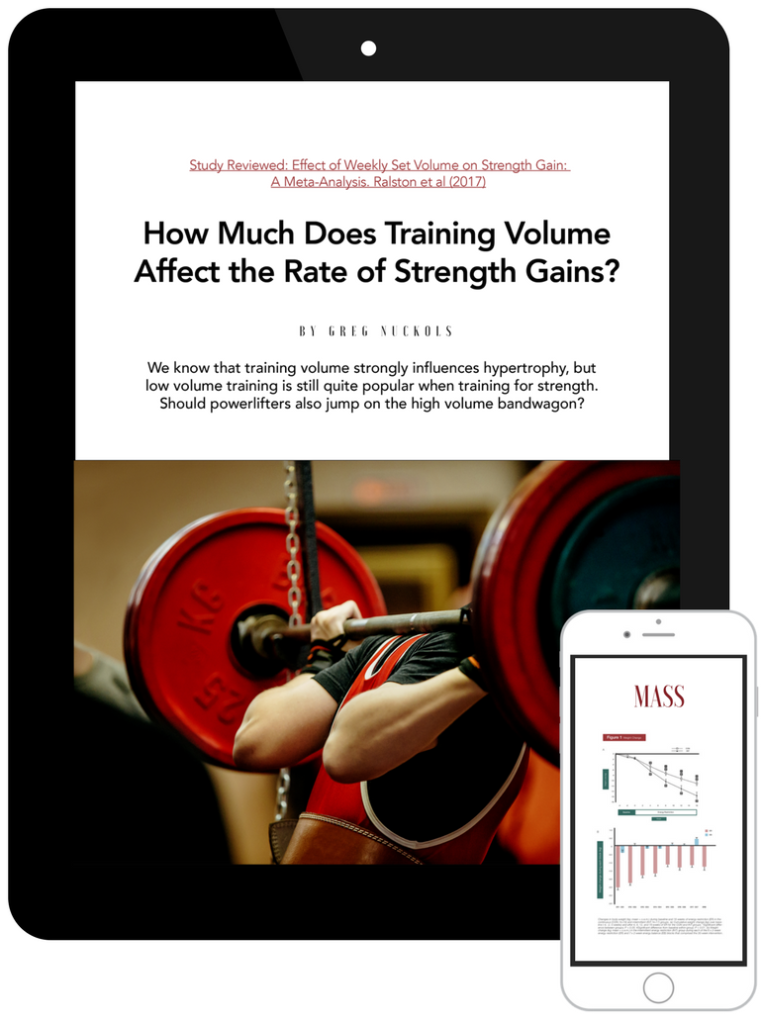 MASS Research Review is a monthly publication that includes easy-to-read breakdowns of the latest training and nutrition research relevant to strength trainees, strength sport athletes and bodybuilders.